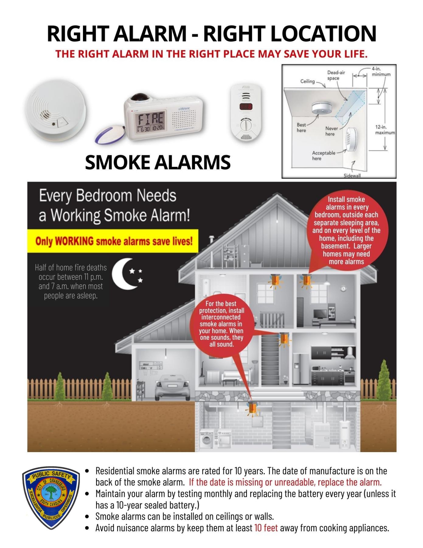 Smoke alarms save lives. Smoke alarms that are properly installed and maintained play a vital role in reducing fire deaths and injuries. If there is a fire in your home, smoke spreads fast and you need smoke alarms to give you time to get out.